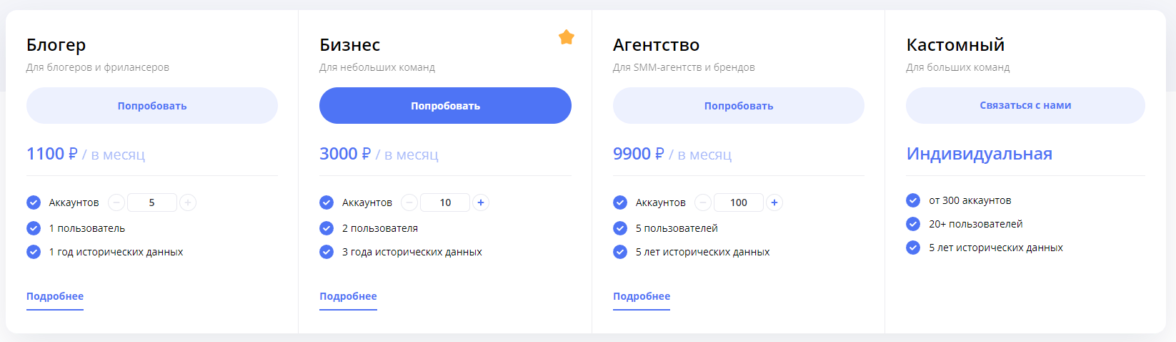 Сервис недешевый, но есть скидка 30% при оплате за год и возможность попробовать функционал бесплатно без привязки карты.