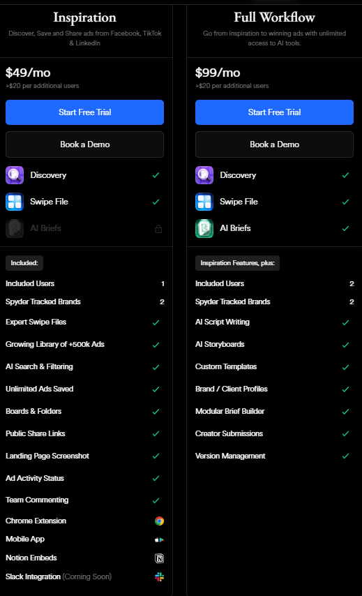 Этот сервис не просто собирает объявления из рекламных библиотек Facebook*, TikTok и других источников, но и позволяет создавать доски креативов с совместным доступом. Есть расширение для Chrome.
