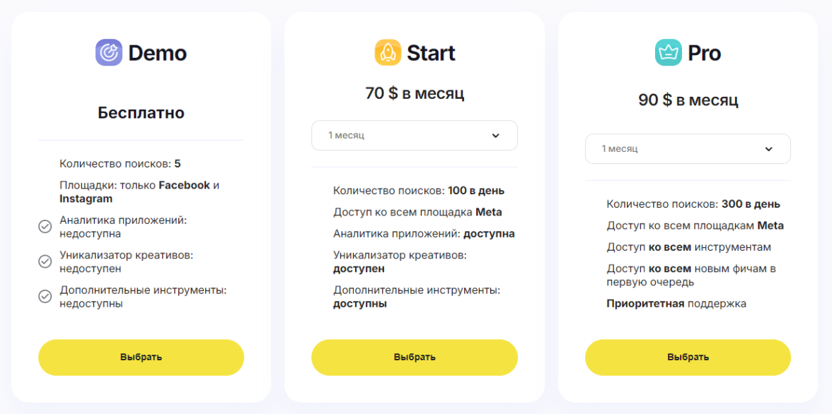 Spy-сервисы — это инструменты для сбора и мониторинга рекламы конкурентов. Их используют, чтобы найти идеи для офферов, креативов, рекламных заголовков и текстов. Некоторые инструменты позволяют полностью выкачивать рекламные кампании, отслеживать даты запуска и окончания, гео, демографические настройки и другие важные параметры.