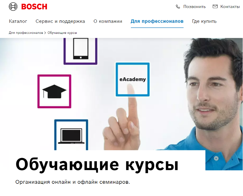 Описание продукта: серия бесплатных онлайн-вебинаров от Bosch. Вебинары проходят в формате онлайн-трансляций, а также доступны в записи после окончания вебинара. В рамках кампании идет привлечение потребителей, заинтересованных в продукте.