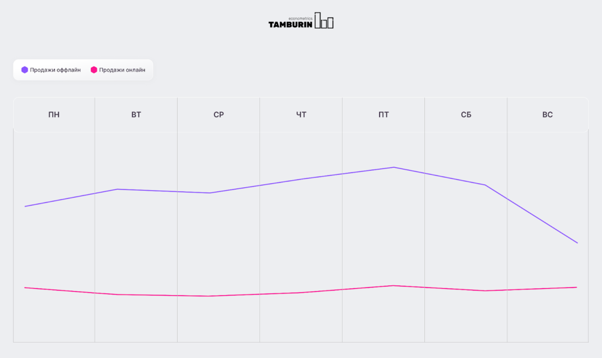 Мы закладывали день недели в модель отдельным фактором. Это помогло точнее понять вклад выходных дней и рассчитать необходимый уровень медиа поддержки в будни/выходные.