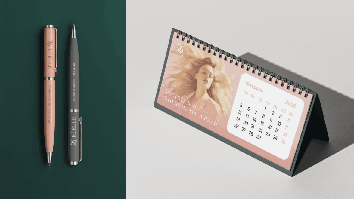 1. Создать айдентику, которая визуально отстроит RÉÉLLE от конкурентов — в первую очередь от другого ключевого игрока рынка. Важно было уйти от прямых медицинских ассоциаций и показать другой уровень.