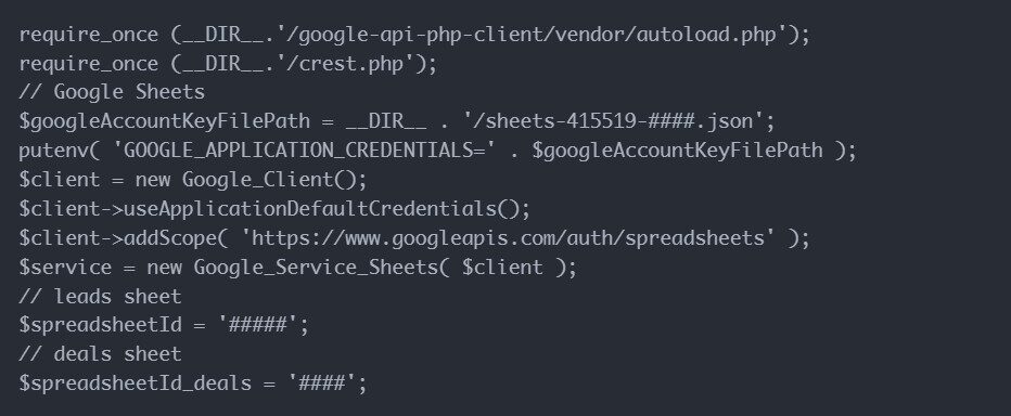 Для работы с Google таблицами на сервере, в папке с приложением установили PHP-библиотеку. Сами таблицы первоначально создаются через веб-интерфейс. Далее создается сервисный аккаунт Google. Этот аккаунт (e-mail) привязывается к созданной таблице с правами редактирования: