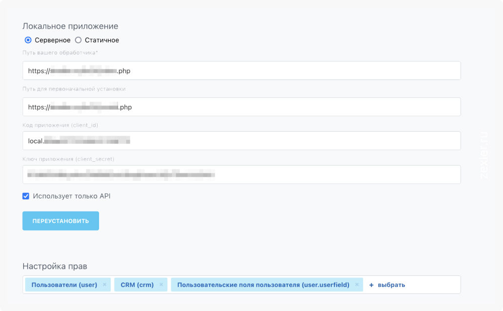 Для подключения к REST API, было создано локальное приложение, которое хранится у нас на сервере.