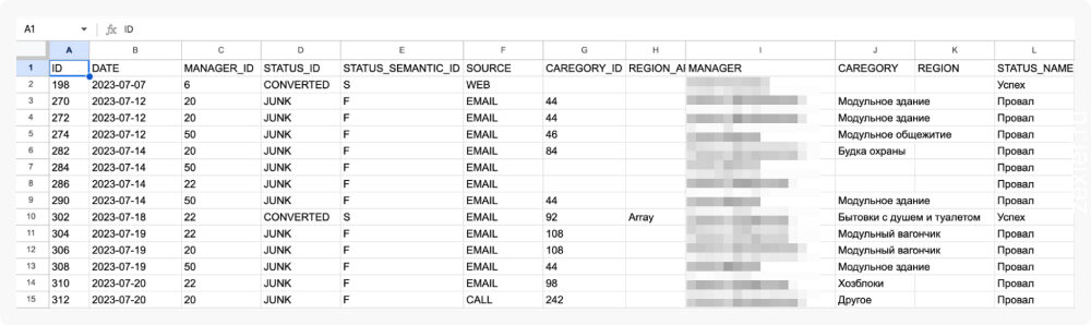 Благодаря таким отчетам появляется возможность максимально быстро проанализировать информацию в режиме онлайн или применить фильтры по категориям, менеджерам, источникам и так далее.