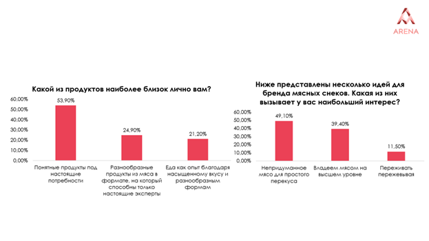 1. Мини-колбаски, мясные чипсы и вяленое мясо — топ среди потребителей выбранных типов снеков.69% респондентов утверждают, что для них важна простота и понятность продуктов для перекуса.