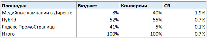 Однако Промостраницы принесли всего 5% всех конверсий: CPM составил 69 руб., CR — 0,1%.