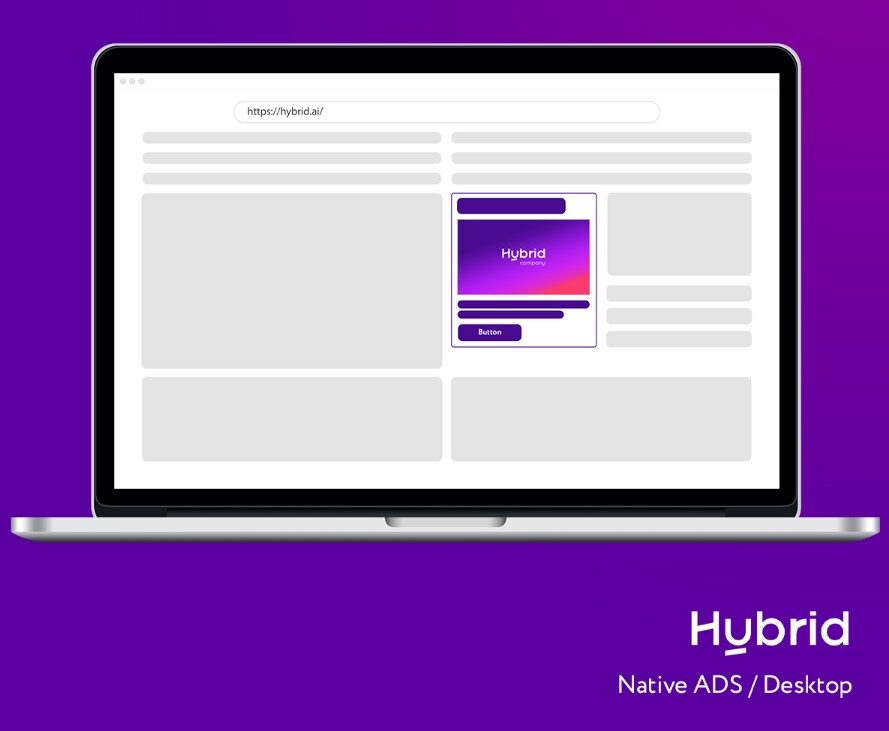 Hybrid — программатик-экосистема с собственным стеком технологий и решений для любых рекламных целей. Инструменты работают на основе AI и ML (Machine Learning) алгоритмов. Их легко комбинировать между собой и интегрировать с другими сервисами. Выбрали следующие форматы для продвижения: Native ADS, баннеры на Desktop, Mobile Web + In App.