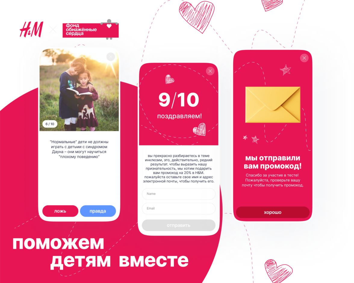 Сам тест получил множество трогательных откликов. Благодаря усилиям фонда и H&M этот проект получил широкое распространение и вызвал массовую реакцию. «Обнажённые сердца» рассказали, что рамках сотрудничества компания H&M передала им 1 500 000 рублей, которые были направлены на поддержку особенных детей и их семей.