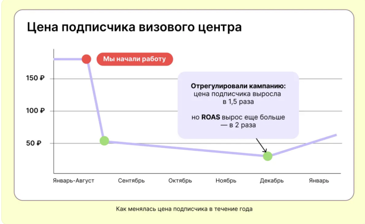 Выбрали самый наглядный способ показать, насколько снизилась цена подписчика