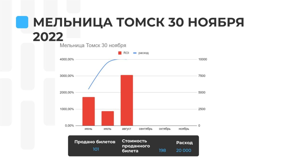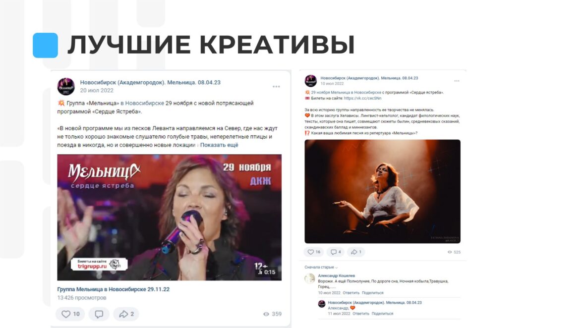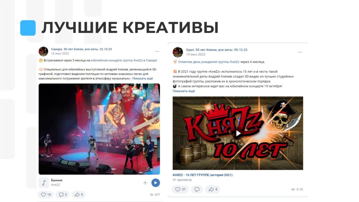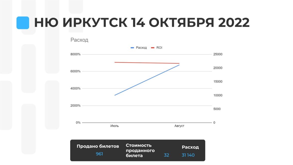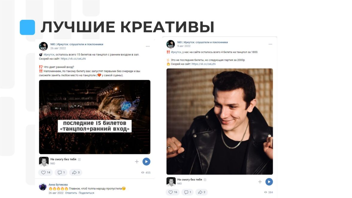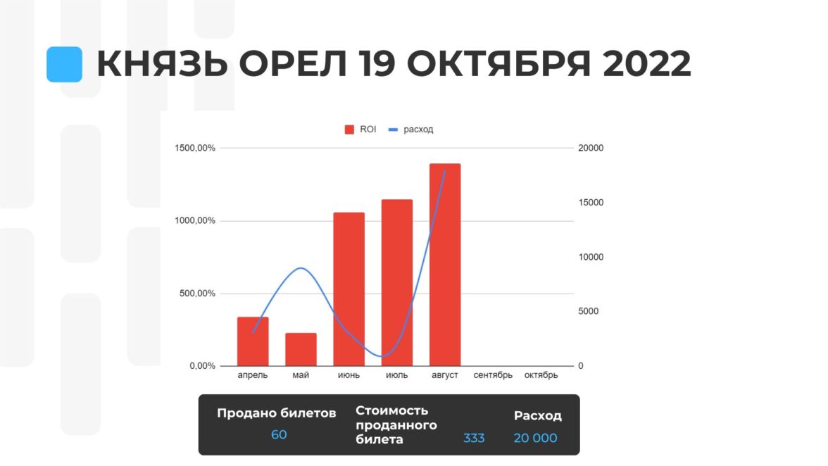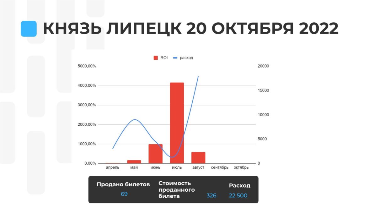 Приведу примеры кейсов концертов, которые мы запускали в начале лета, но даты самих концертов приходились на осень 2022.
