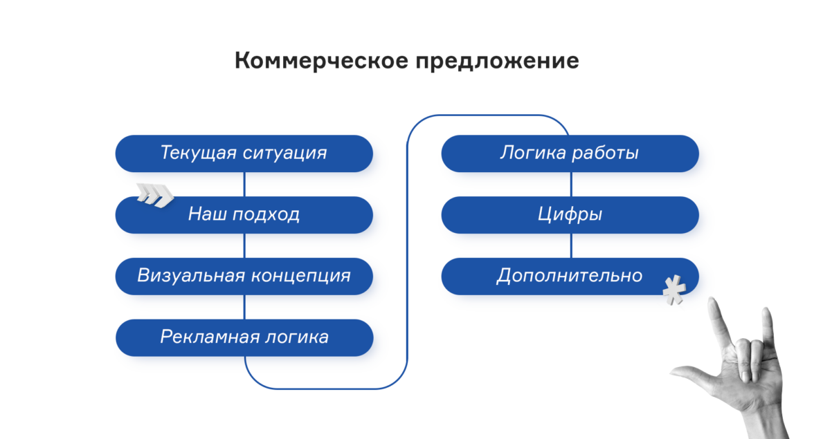 После всех созвонов, брифов и добрифовок вы получаете на руки коммерческое предложение с таким содержимым:
