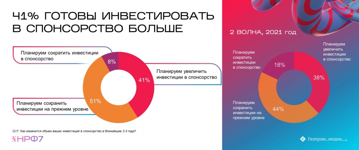 В горизонте 2–3 лет около 41% респондентов планируют увеличить свои вложения в спонсорство.