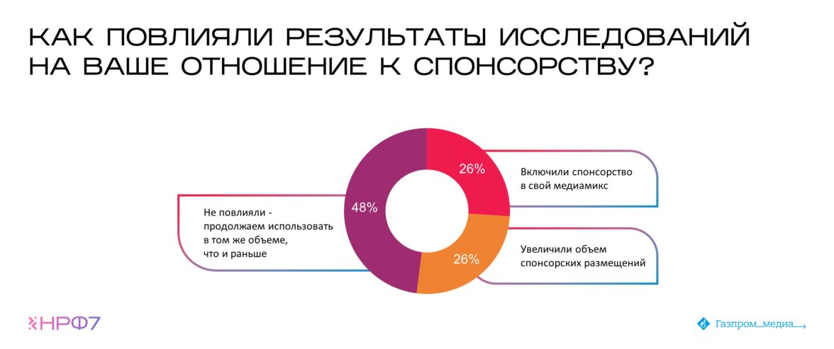26% респондентов после знакомства с данными предыдущих волн включили спонсорство в свой медиамикс, а еще 26% — увеличили объем размещений.