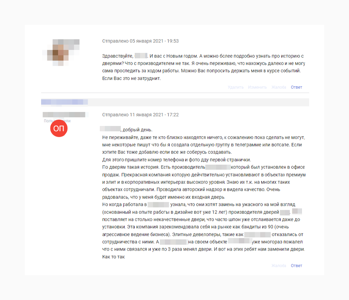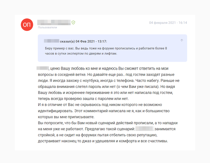 Неудовлетворенный сотрудник нашего клиента больше не оставлял информации, дискредитирующей бывшего работодателя, но пытался собрать единомышленников вне форума, призывая посетителей писать ему личные сообщения и указывать свои контактные данные.