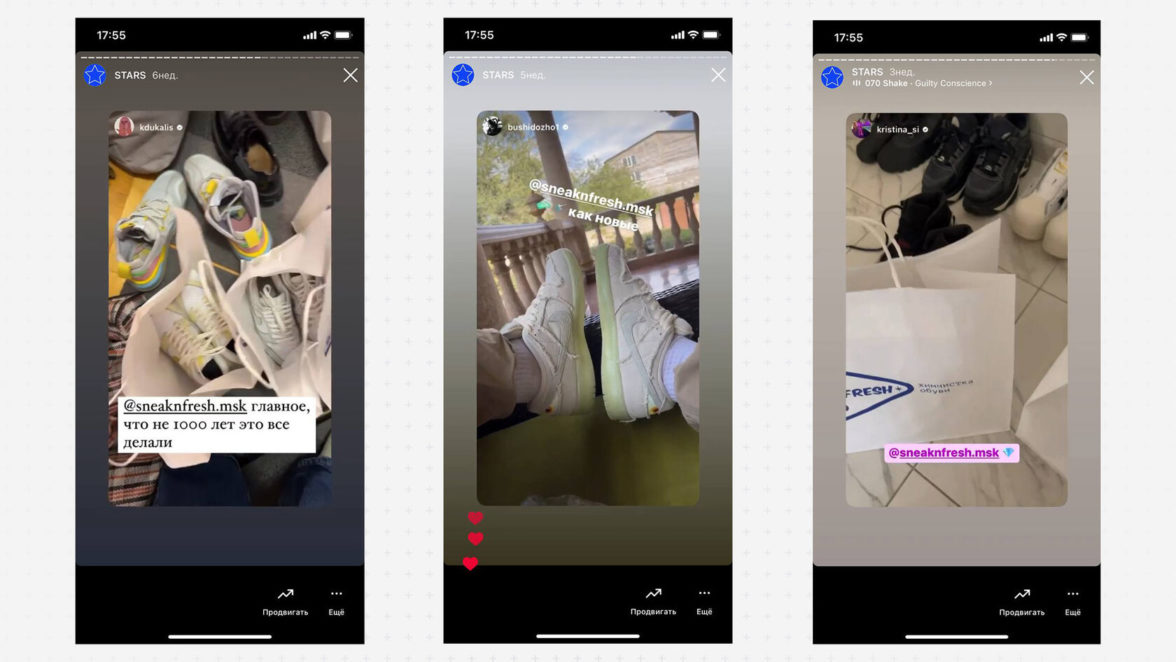 4. Реализовали рекламную кампанию в Instagram* с блогерами, инфлюенсерами, звёздами. Но с аккаунтом в 35 подписчиков мало кто доверит чистить свою обувь даже за рекламную интеграцию. Поэтому сначала мы плотно работали с UGC-контентом.
