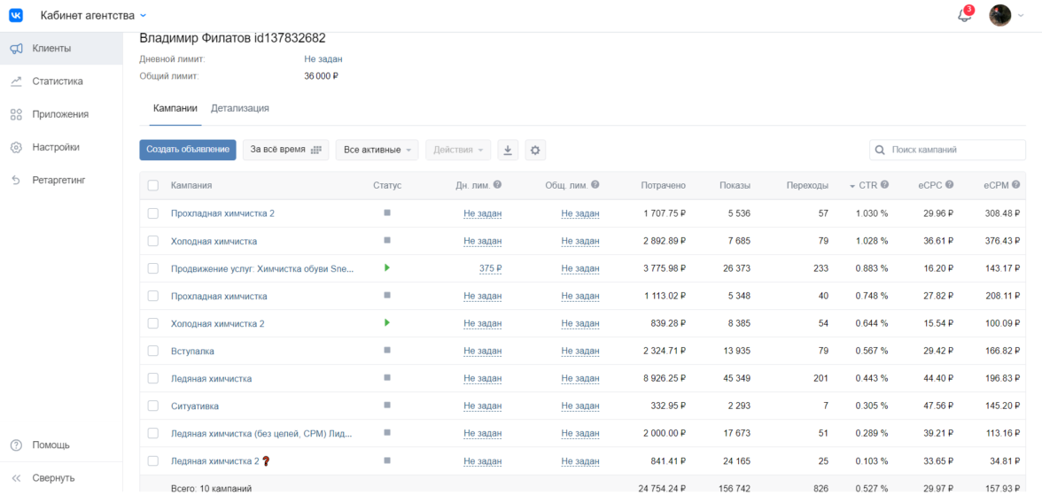 На холодной и ледяной аудитории видим неплохую статистику переходов. Но для нашего бизнеса здесь оказалась менее платёжеспособная аудитория. Многих отталкивает стоимость услуг.