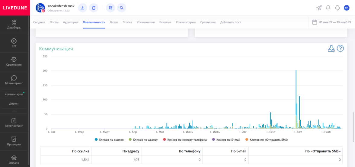 5. Анализировали работу с помощью сервисов аналитики. Чтобы отследить эффективность каналов трафика и контента, подключили Яндекс.Метрику и LiveDune.