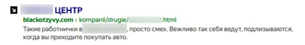 Пример негативного сайта в выдаче, который удалось сместить за счет формирования позитивной выдачи