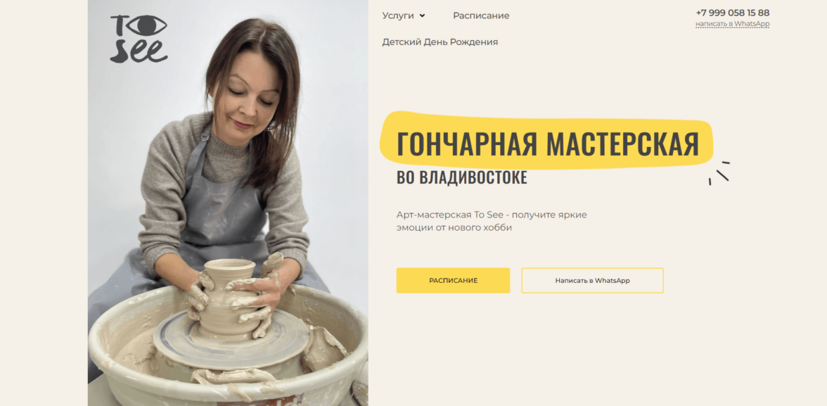 Здесь пользователь сразу понимает, куда он попал, где расположена гончарная мастерская, и что ему даст ее посещение.