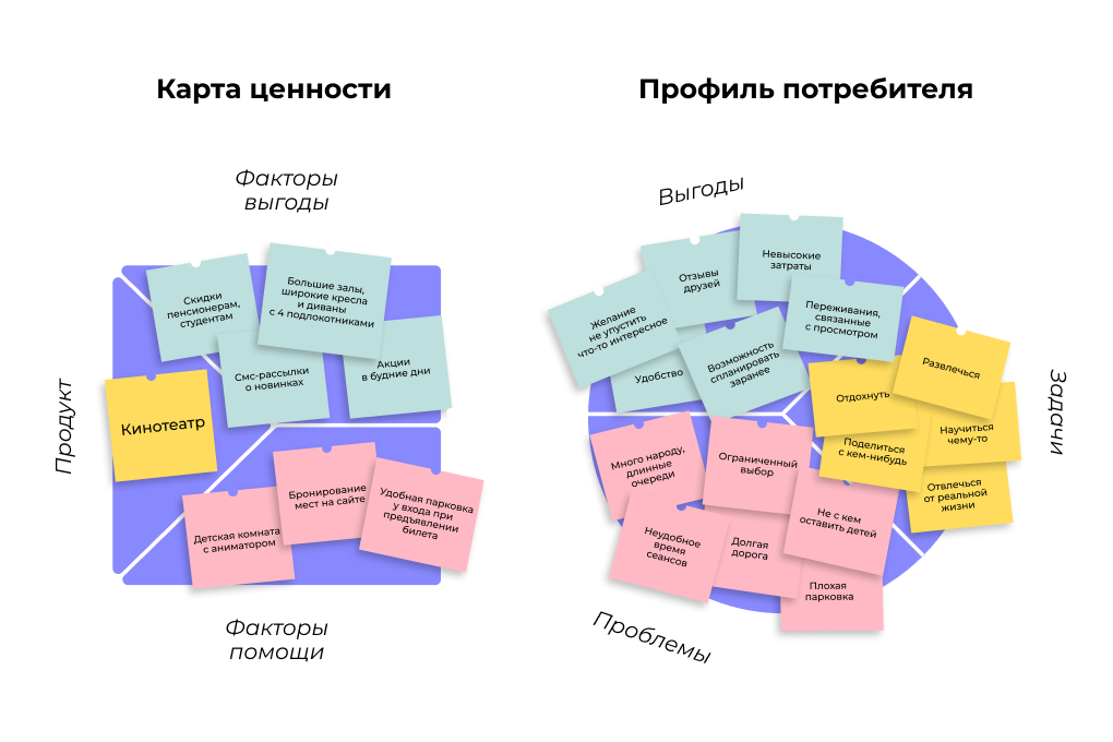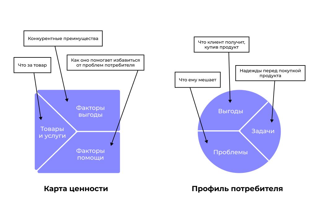Карта ценности — описание продукта. Профиль потребителя — описание конкретного аватара ЦА.