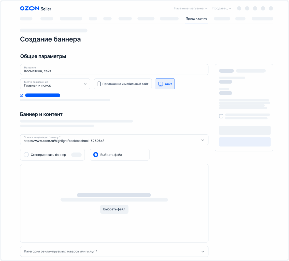 Если внести данные об изначальном договоре в личном кабинете Ozon, данные о рекламных креативах будут передаваться в ЕРИР автоматически.
