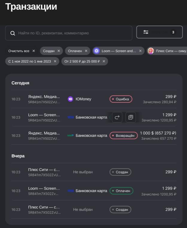 Отметьте каждый успешный платеж в системе учета, чтобы иметь возможность отслеживать динамику доходов.