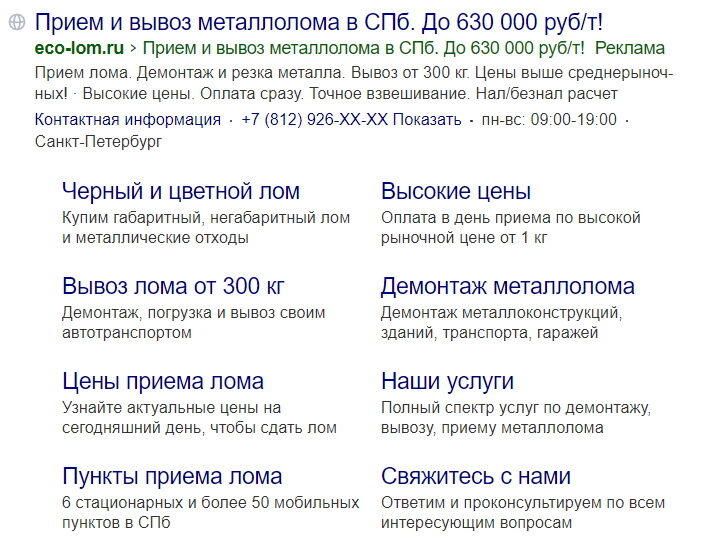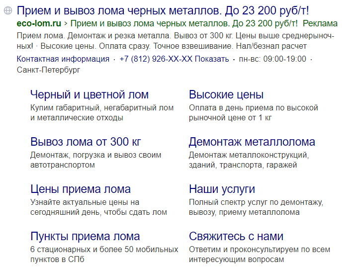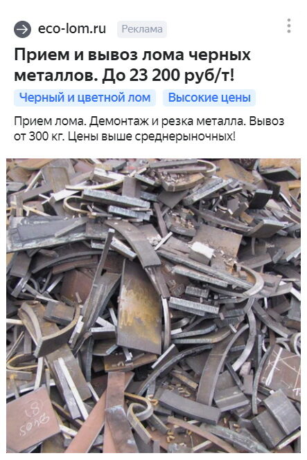 Настроили отдельные кампании под каждый тип услуги: черный лом, цветной лом, демонтаж и вывоз.