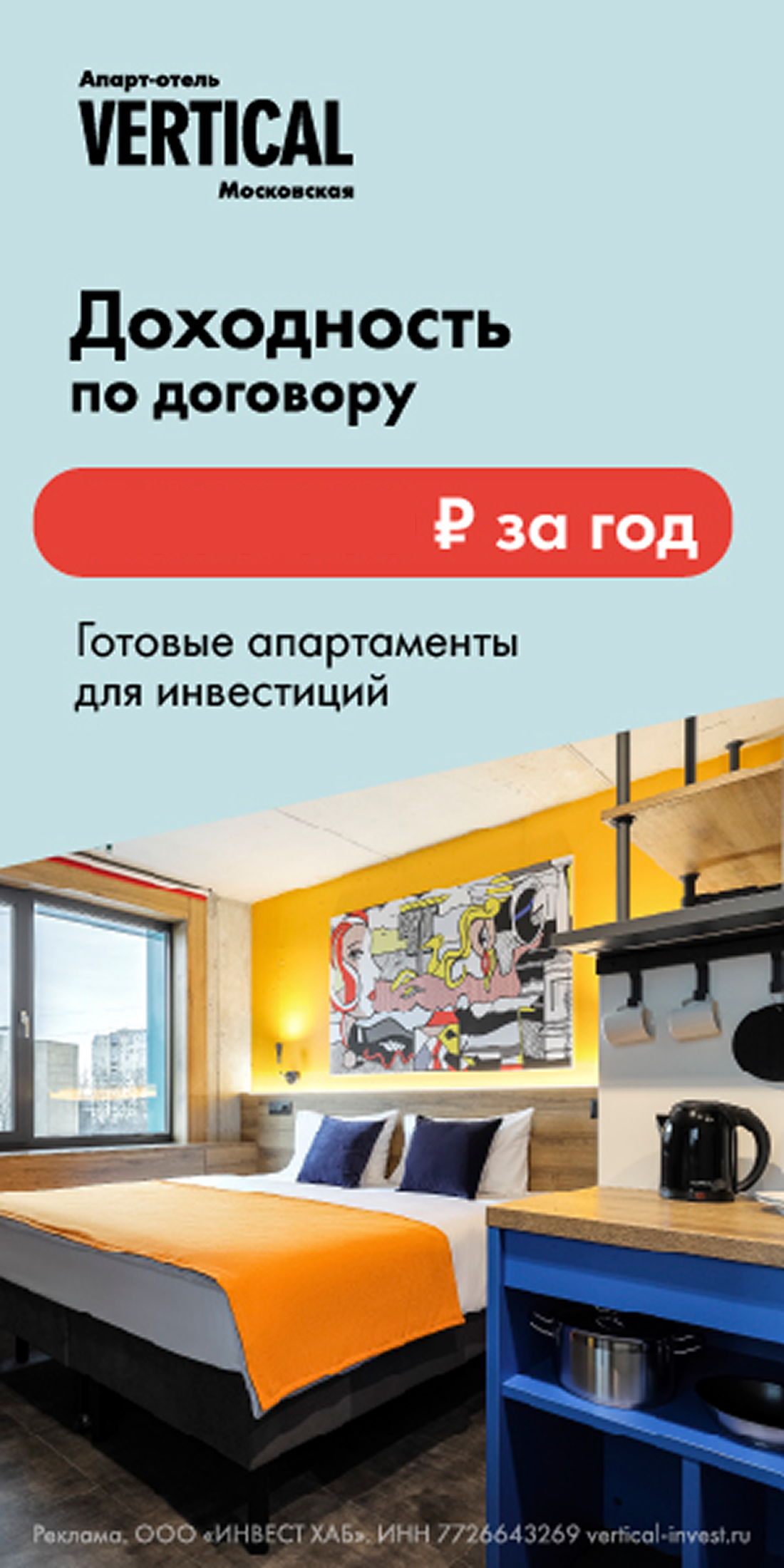 Клиент: сеть апарт-отелей Vertical, владеющая пятью проектами в Санкт-Петербурге, Москве и Дубае. Она предлагает инвестиционные объекты, которые могут заинтересовать как частных инвесторов, так и компании, ищущие надежные вложения.