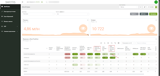 Для оценки результативности была подключена платформа Smartis