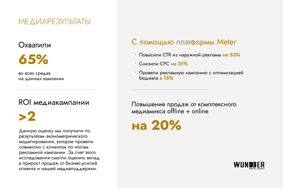 Кейс Wunder Digital подтвердил значимость креатива в условиях устоявшегося рынка с высокой конкуренцией и перегруженным клаттером.