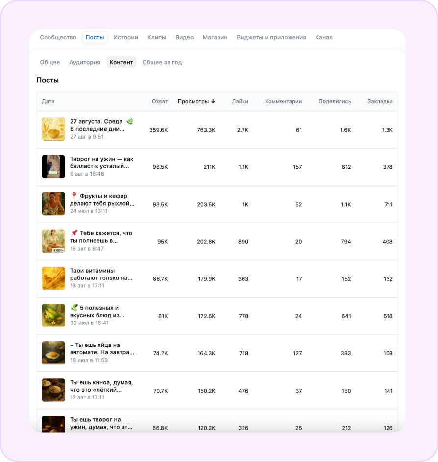Также этот контент мы дублируем и в другие соцсети, и в некоторых тоже удалось получить охват более 1 миллиона в месяц, но максимальный результат по трафику именно в VK!
