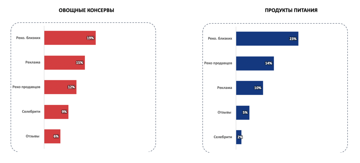 Мы видим, что наличие продуктовых промо является ключевым фактором выбора. Также важна известность бренда, качество и натуральность. А реклама находится на втором месте среди причин покупки после рекомендации близких.