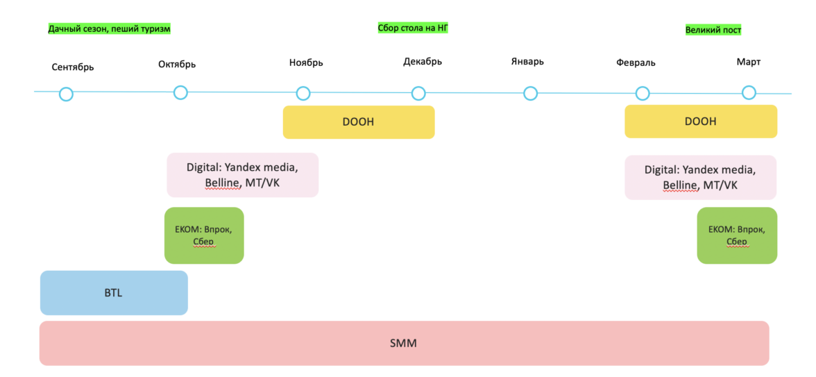 В нашей категории есть ярко выраженная сезонность, поэтому у бренда нет необходимости вести непрерывную интенсивную РК в течение всего года. Мы будем действовать флайтами.