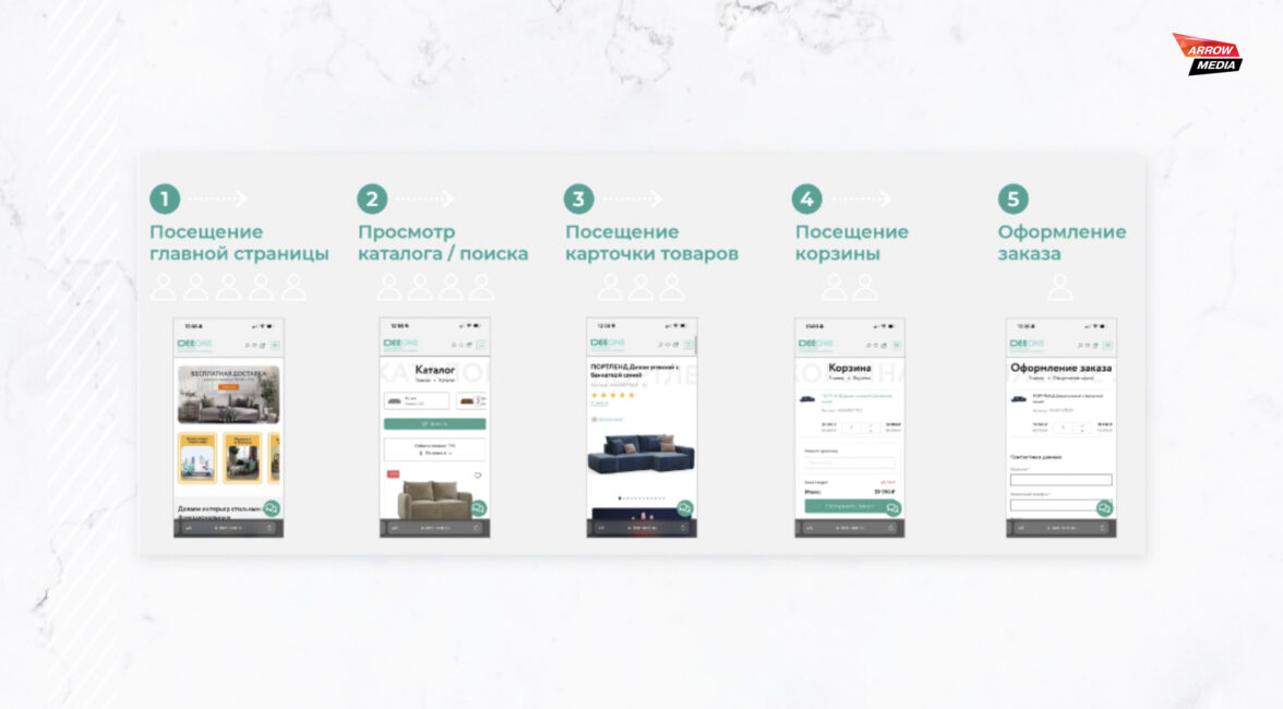 Для того, чтобы создать пользовательский сценарий, использовали данные из Яндекс Метрики, тепловых карт и Вебвизора.