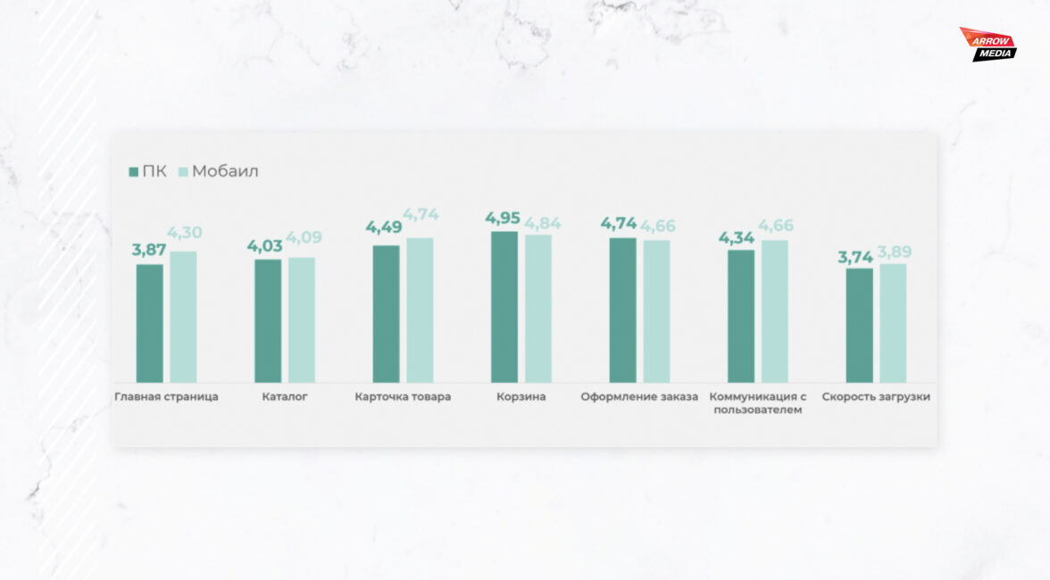 На каждом этапе пути участникам предлагалось оценить удобство сайта по нескольким ключевым параметрам, ответить на вопросы в анкете и прокомментировать, какие именно моменты вызывали у них трудности.