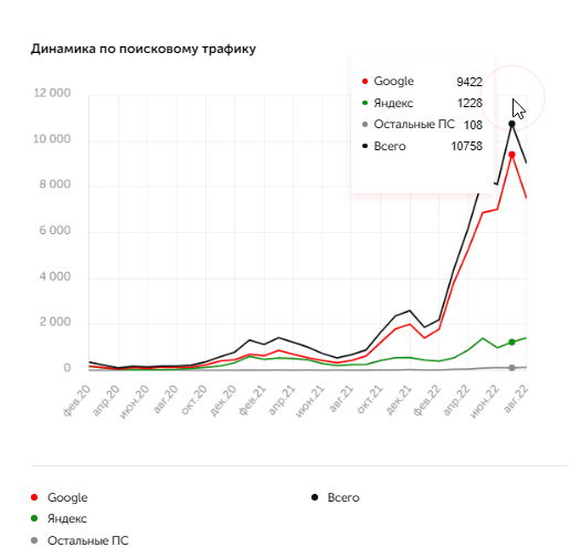 Вместо стандартного летнего проседания трафика мы наблюдаем взрывной рост, который достиг своего пика в августе
