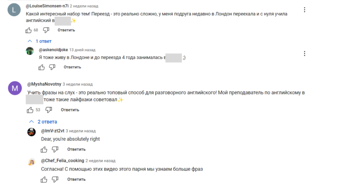 YouTube — одна из немногих площадок, где комментарии по-прежнему читают. Особенно в нишах, где решения о покупке принимаются после «созревания» интереса. EdTech — как раз такой рынок. Пользователи ищут обзоры, смотрят видеоуроки, читают обсуждения. Хороший комментарий от человека, который «уже попробовал» и делится опытом — гораздо убедительнее баннера. Он запускает поведенческий цикл: интерес → поиск → переход → ознакомление с продуктом.
