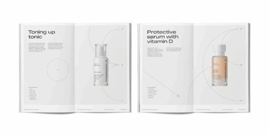 Название Cosmomedica может трактоваться двояко: как Cosmetic + Medicine или как Cosmos + Medicine. Оба прочтения точно передают суть бренда. Ключевая идея получила развитие в метафоре космоса, ставшей отправной точкой для визуальной и смысловой концепции. Тема космоса звучит во всей идентичности бренда: от характера сообщений до используемого графического языка, от универсальной инфографики в статике и движении до цветовой палитры и фотостиля.