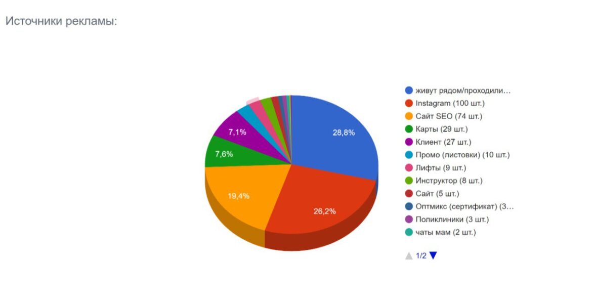 Мы находили на выбранной площадке местных инфлюенсеров, спортивных инструкторов, педиатров и лайфстайл блогеров, которые готовятся стать родителями или недавно ими стали. Затем приглашали их воспользоваться услугами центра на бартерной основе, на что чаще всего получали положительные ответы. Так мы бесплатно привлекали новых подписчиков аккаунта и в дальнейшем клиентов. В общем за 9 месяцев в 2023 году с Инстаграма* пришло 100 клиентов.