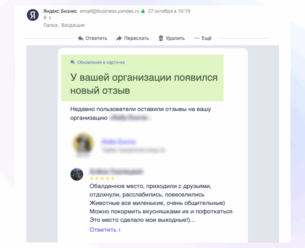 3. Подчеркните сильные стороны, которые отметил клиент. Если человек написал, что у вас уютно, ответьте: «Мы действительно гордимся нашей атмосферой и рады, что вы это почувствовали». Такой ответ работает не только на автора, но и на тех, кто просто читает отзывы и еще не был у вас.