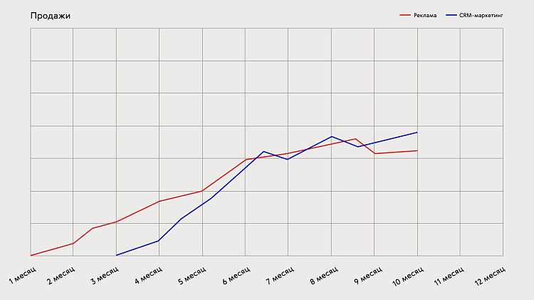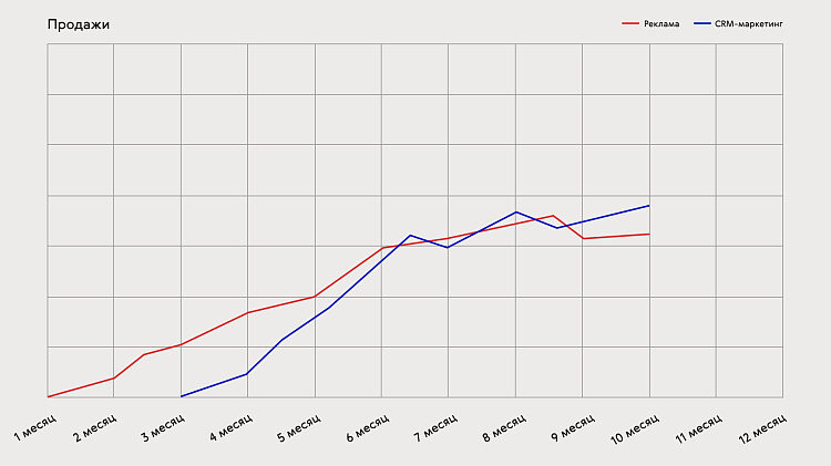 Однако CRM-маркетинг — это инструмент, который работает не только с возвратом пользователей, но и с их привлечением и последующим доведением до продажи. Вместе с рекламой они могут усиливать друг друга, хотя на практике такой подход встречается нечасто.