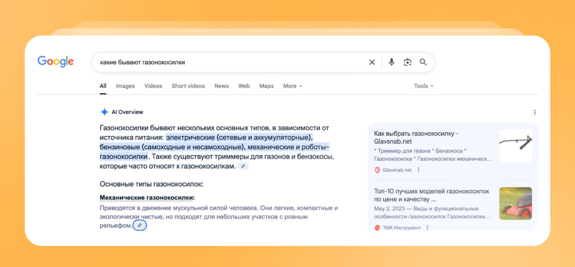 Закладывайте вопрос и ответ прямо в текст. Добавляйте на сайт блоки с типичными вопросами – FAQ или просто начинайте абзац текста в блоге с фразы вроде: «Почему газонокосилка не заводится?» и сразу давай на него точный ответ. Это облегчает задачу и поисковику, и ИИ.
