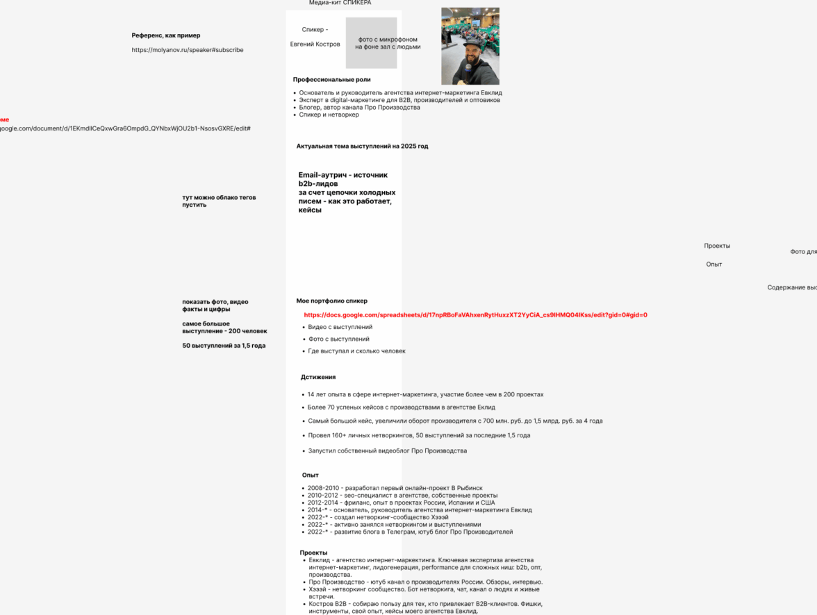 В концепции я увидел, что играю несколько профессиональных ролей. Это руководитель агентства, спикер, блогер и digital-эксперт, а также еще Евклид, как агентство, предлагает услуги. Все это стало основой для разделения сайта на отдельные страницы.