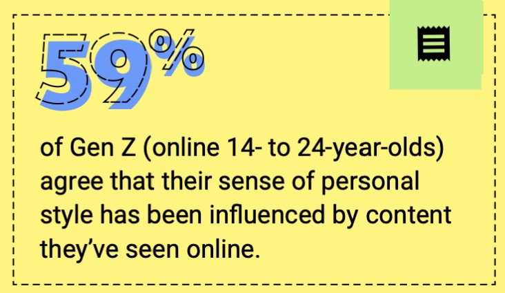 59% зумеров (14–24-летних интернет-пользователей) согласны с утверждением, что на их чувство персонального стиля влияет контент, который они видят онлайн.