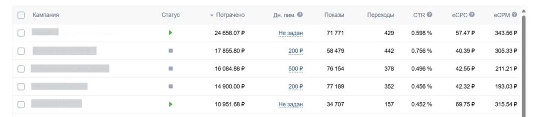 Данные по рекламным кампаниям