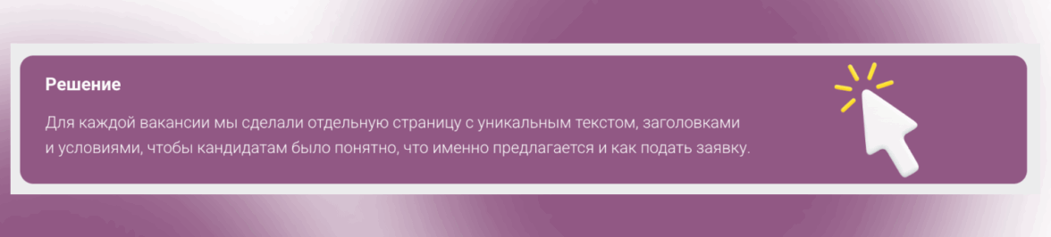 Также мы проанализировали, какие формулировки вакансий ищут кандидаты, и заметили, что текущая посадочная страница была слишком общей — людям было сложно быстро найти подходящую вакансию.