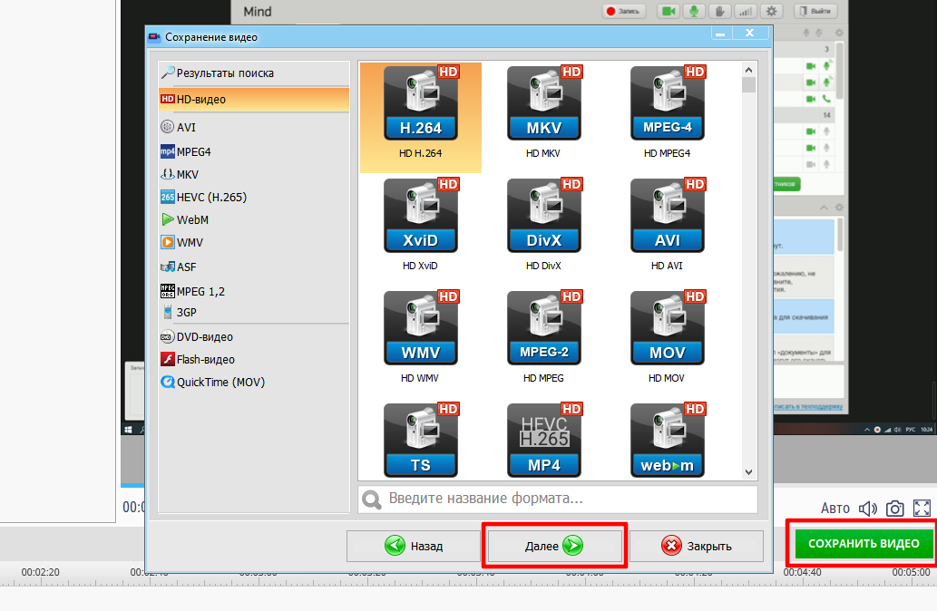 поддержка форматов экспорта AVI, WMV, MKV, AVI и других.