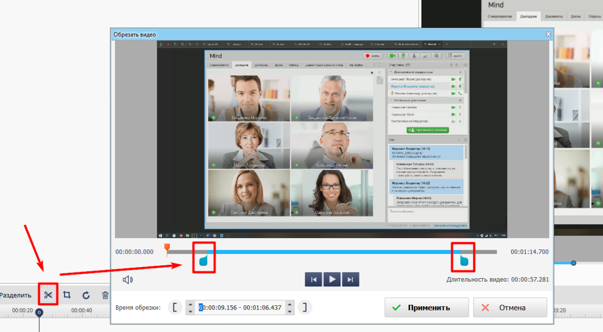 4. Используйте синие маркеры плеера, чтобы обрезать ненужное.