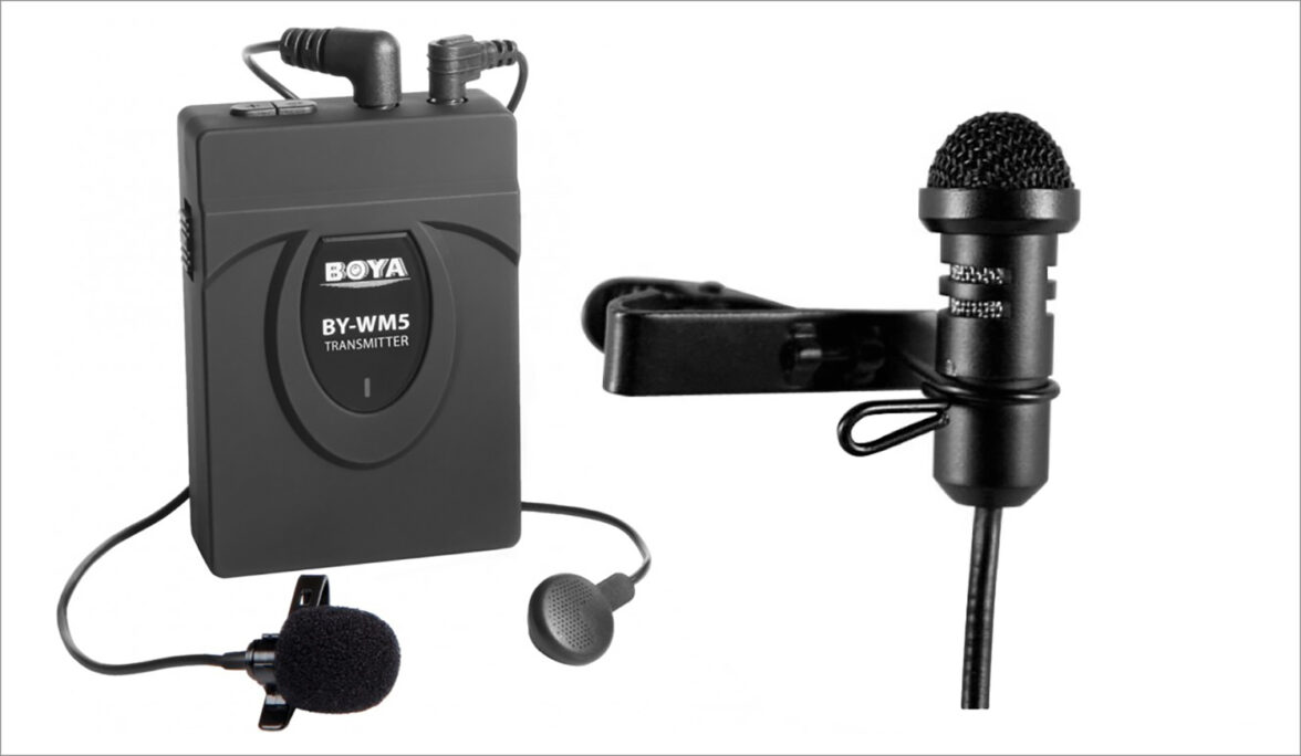 Встроенный микрофон не подойдет. Бюджетным решением будет приобретение лавальерного микрофона-петлички. Такое устройство обеспечивает одинаковый уровень громкости в любой точке съемки. Девайс удобно крепится к одежде и почти незаметен в кадре. Отдавайте предпочтение известным брендам с надежной репутацией — Shure, Audio-Technica, AKG, Beyerdynamic и другим.